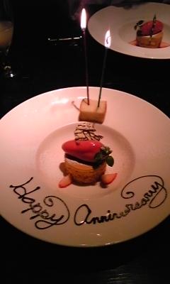 最後のデザートには『Happy Anniversary』とチョコで書いてあり、